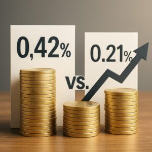 全額を0.42%の預金に預けた場合の年12,600円より年800円多くなります(ただし金利は変動するため、この差は変わる可能性があります)。